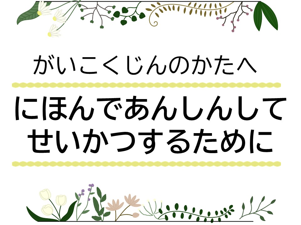 わたしたち は、あなた が あんしんして にほん で せいかつ できるように、